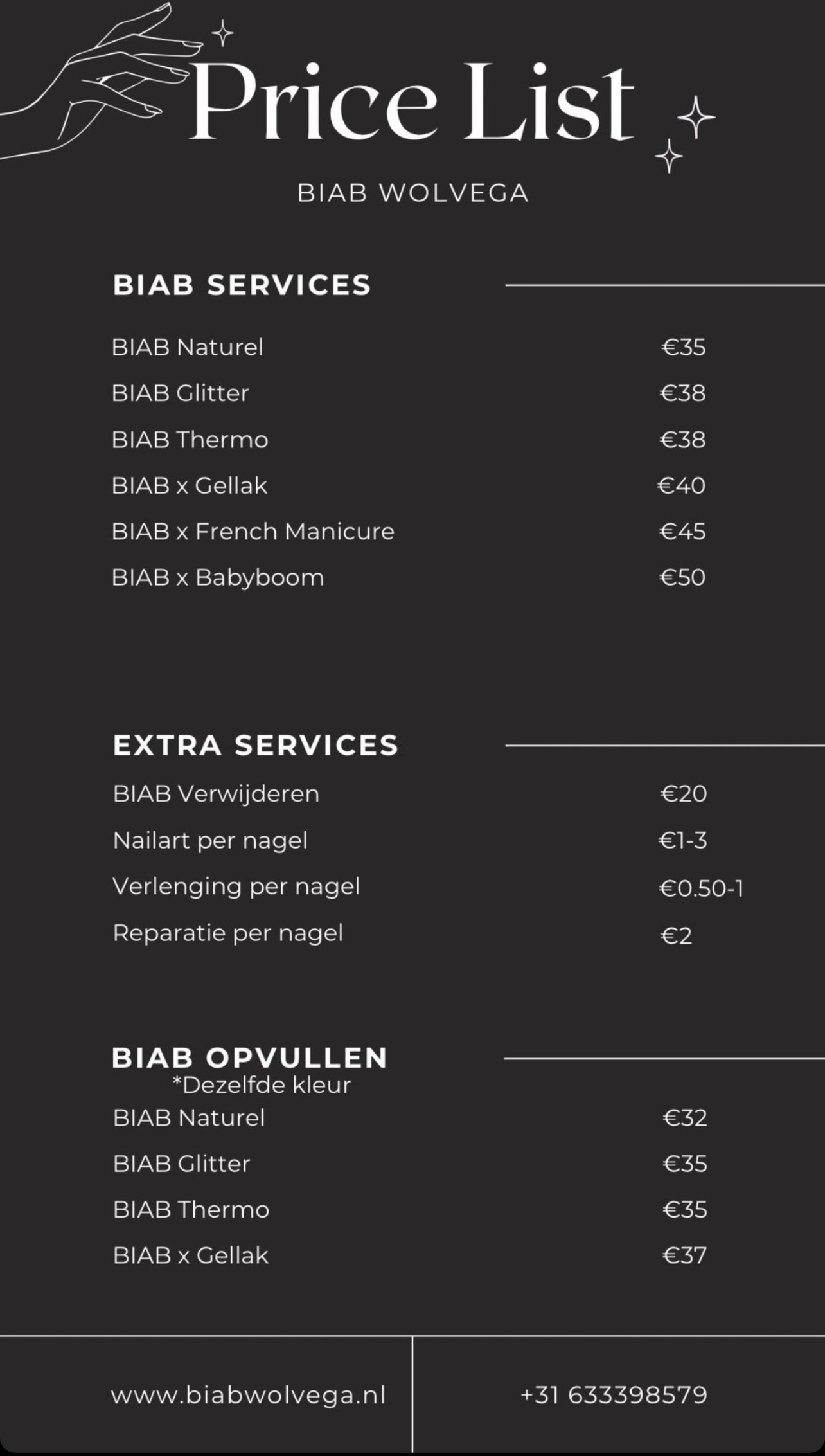 Er een vergoeding van €20,- wordt gevraagd voor het verwijderen van een set nagels die niet door ons zijn gezet.